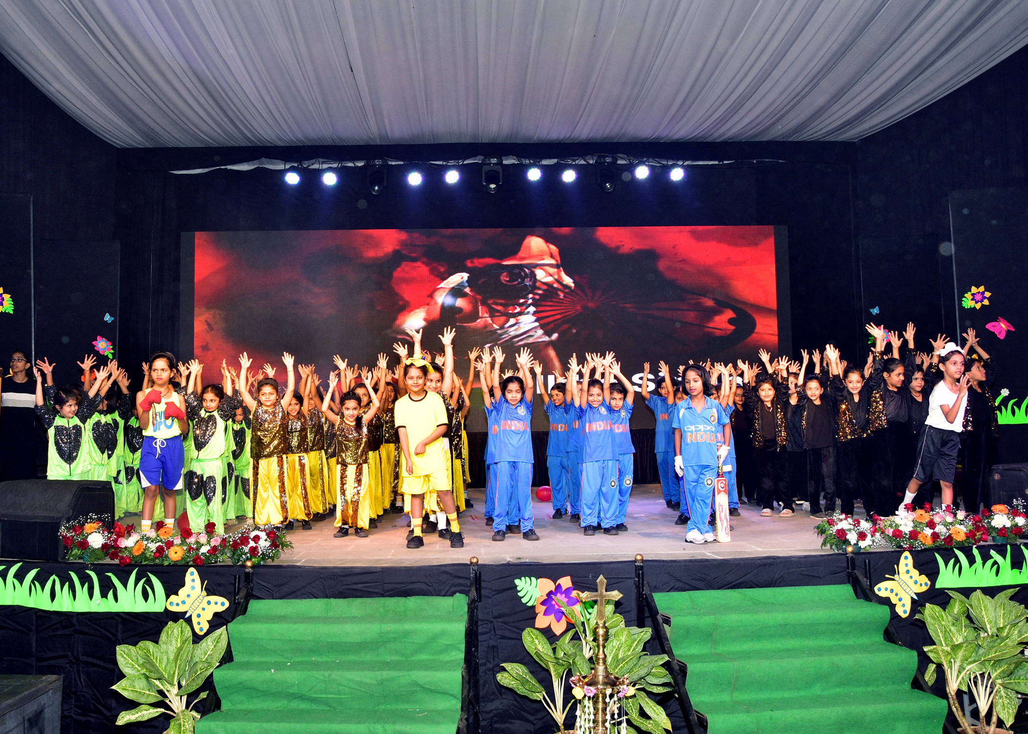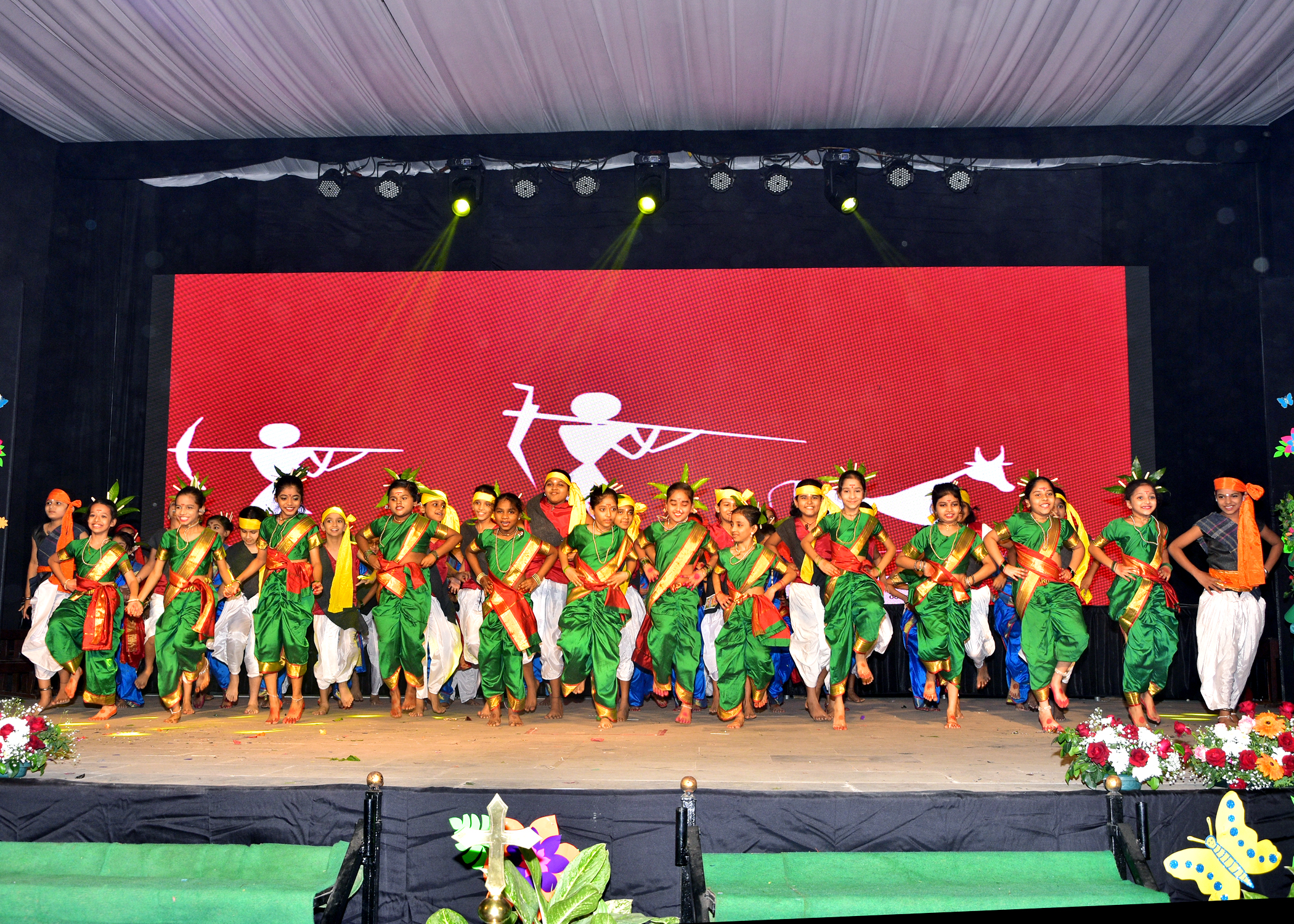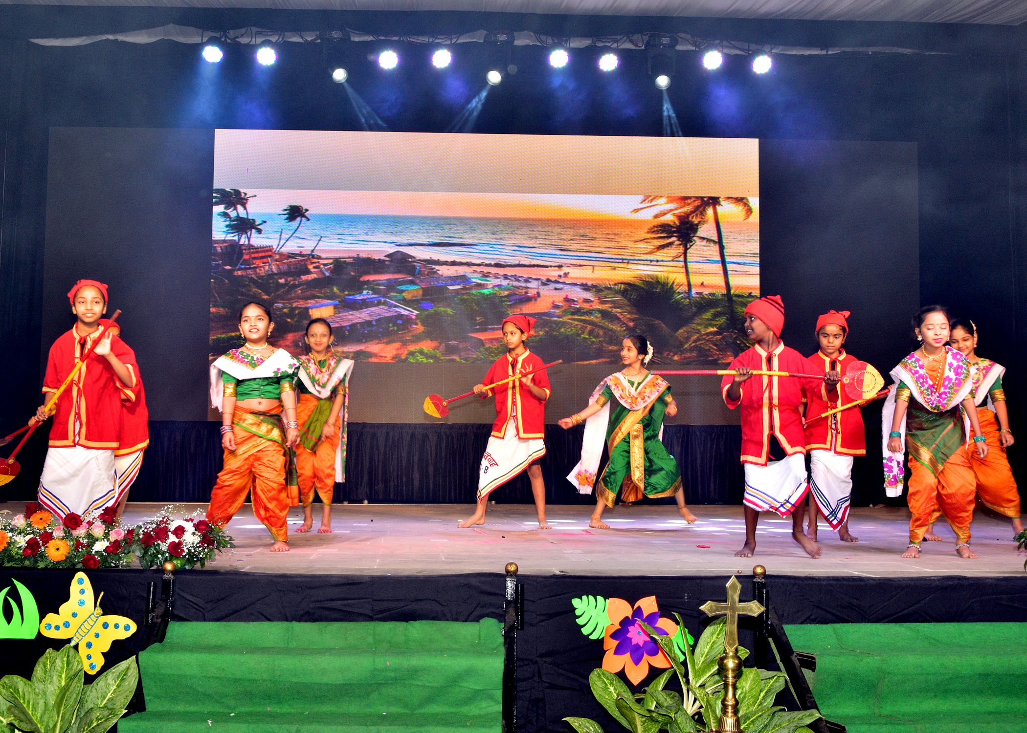 The show began with a warm welcome by Mrs. Laxmi Panjabi and Mrs. Maria Joseph who gave an inspiring inaugural address, also highlighted the importance of such events in the school calendar and how they help in promoting the school’s values and ethos. The program was scheduled at 5.30 p.m. Many eminent dignitaries were present at the Annual Day Celebration. The Chief guests included dignitaries like Rev. Father Simon D’Souza [Parish Priest and Manager of Our Lady of Lourdes Church, Kalyan] and Guest of Honour, Mrs. Archana Dusane – Sonar [Senior Police Inspector, Thane Railway Police Station, Mumbai]. The School invited all the parents to the function which began at 6.00 pm with traditional lamp lighting by the Special guests.