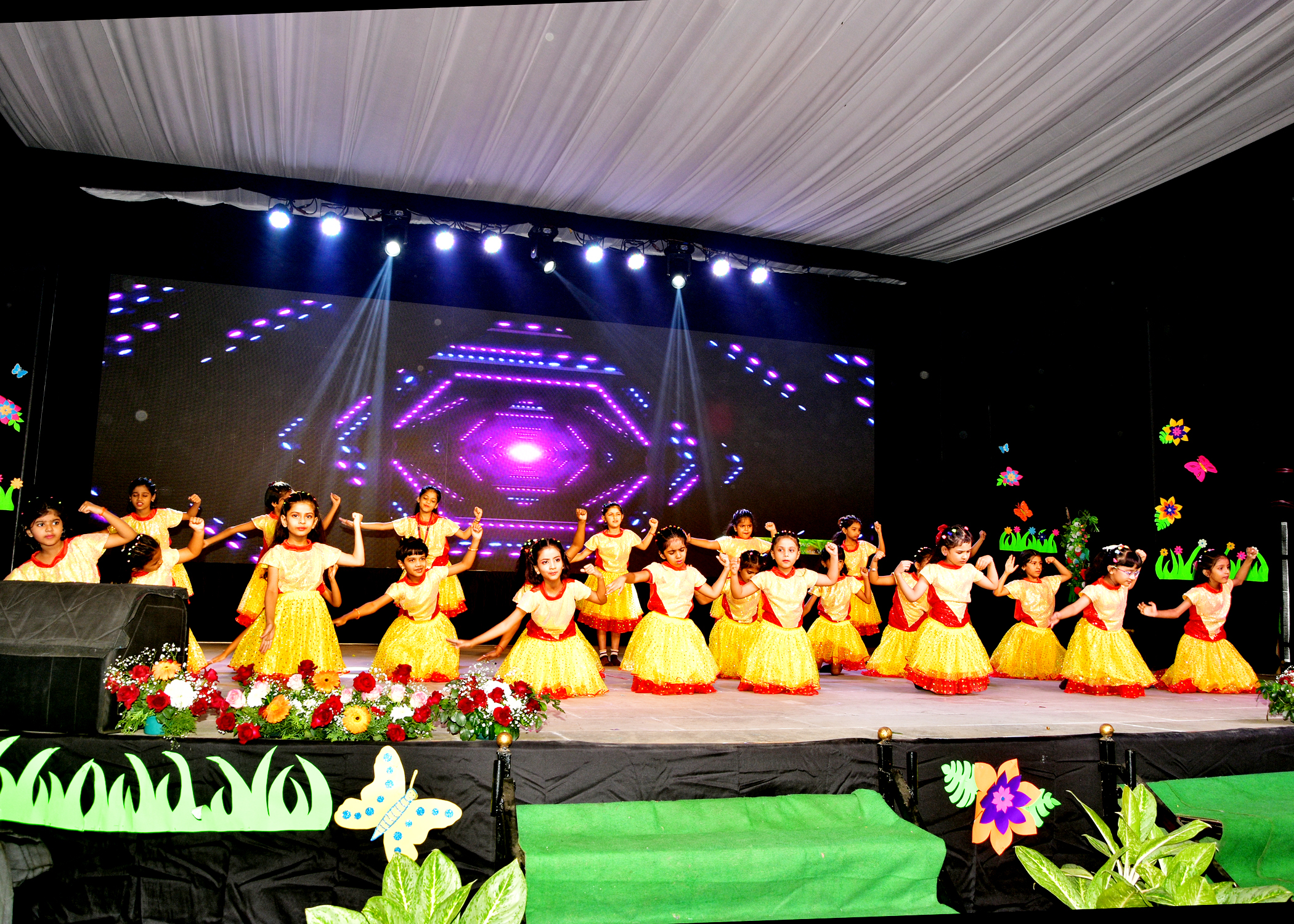 The school campus was adored with colourful banners, lights and thematic props creating a visually appealing ambiance.