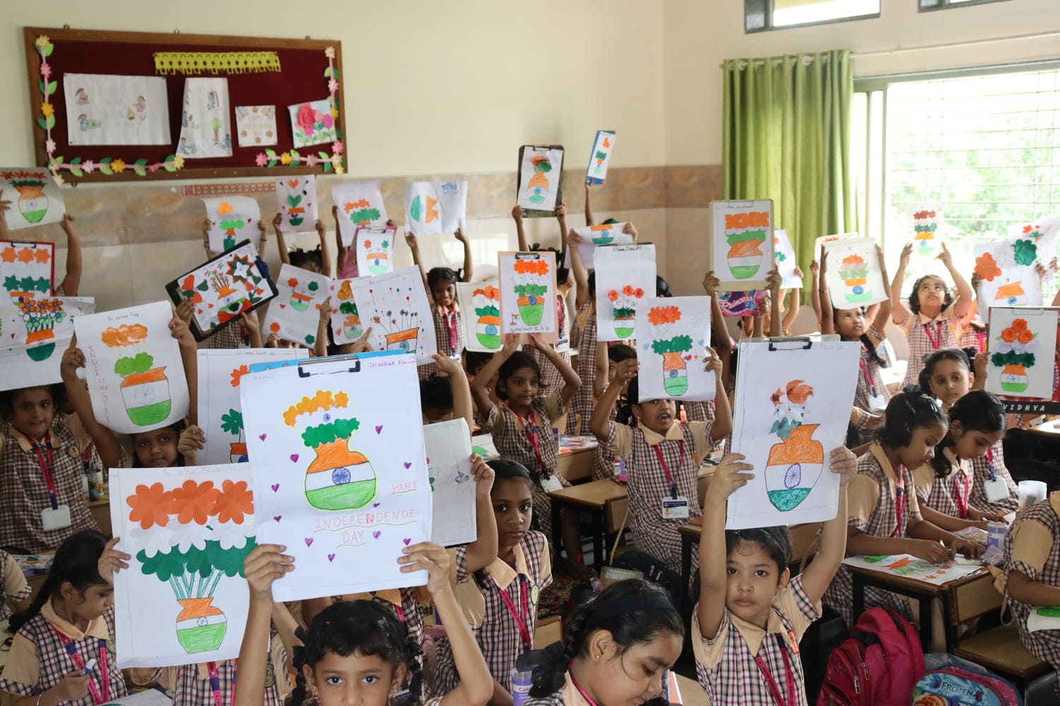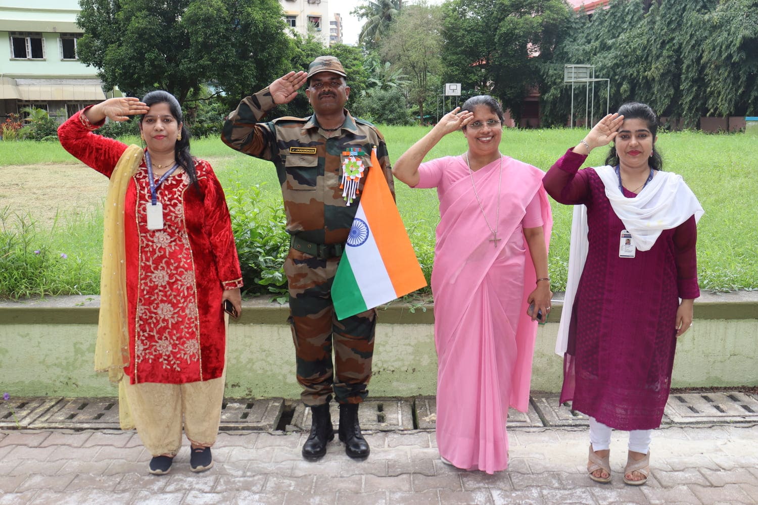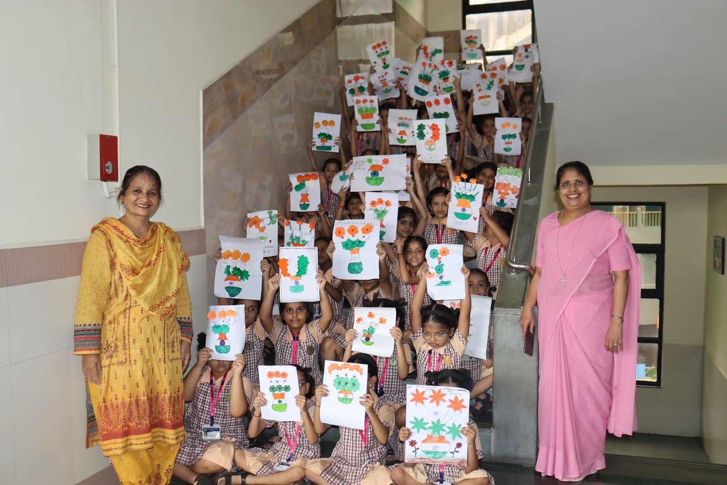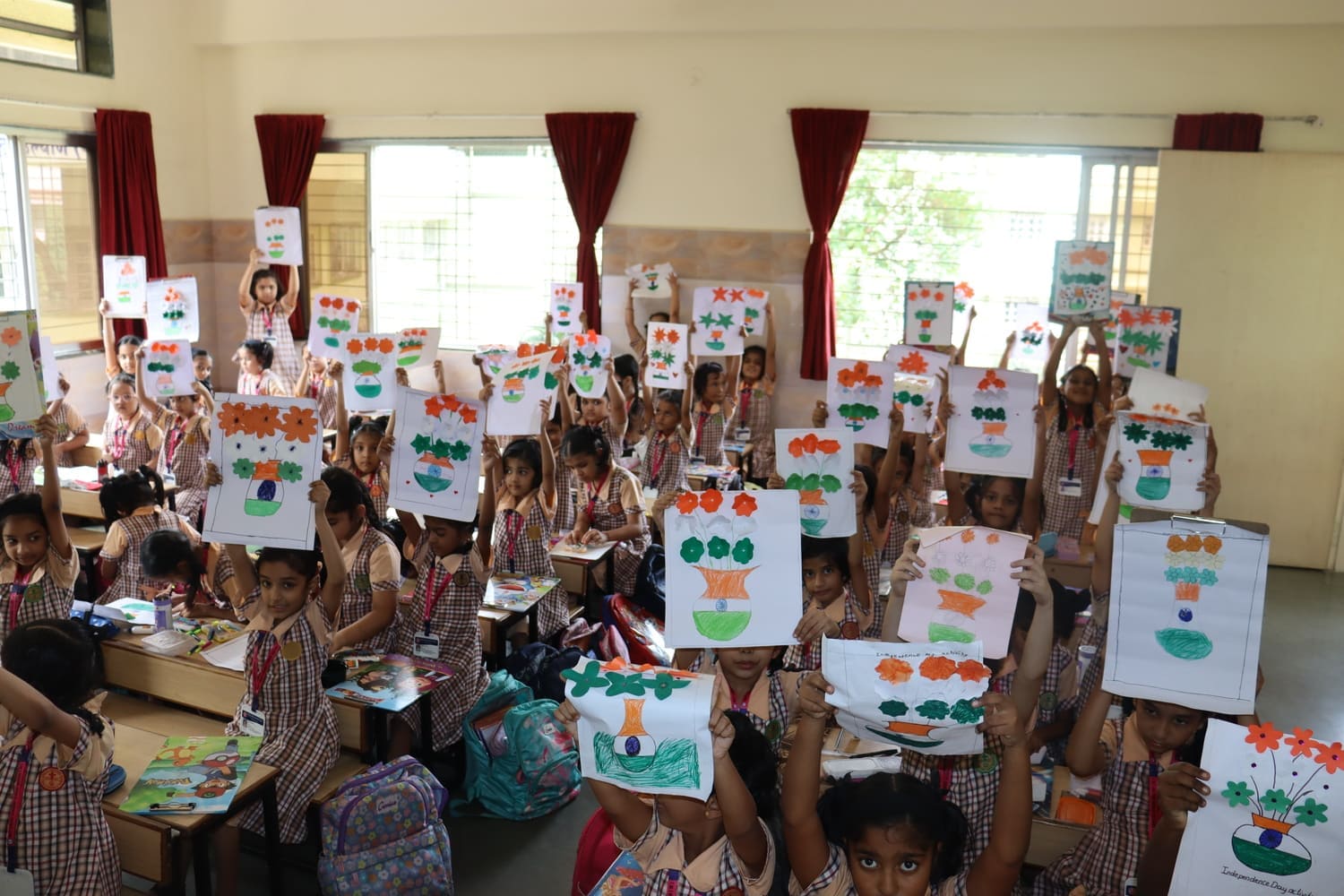 The school had been decorated with flags, tri-colour flowers and the pictures of freedom fighters, created a festive atmosphere to commemorate the day.