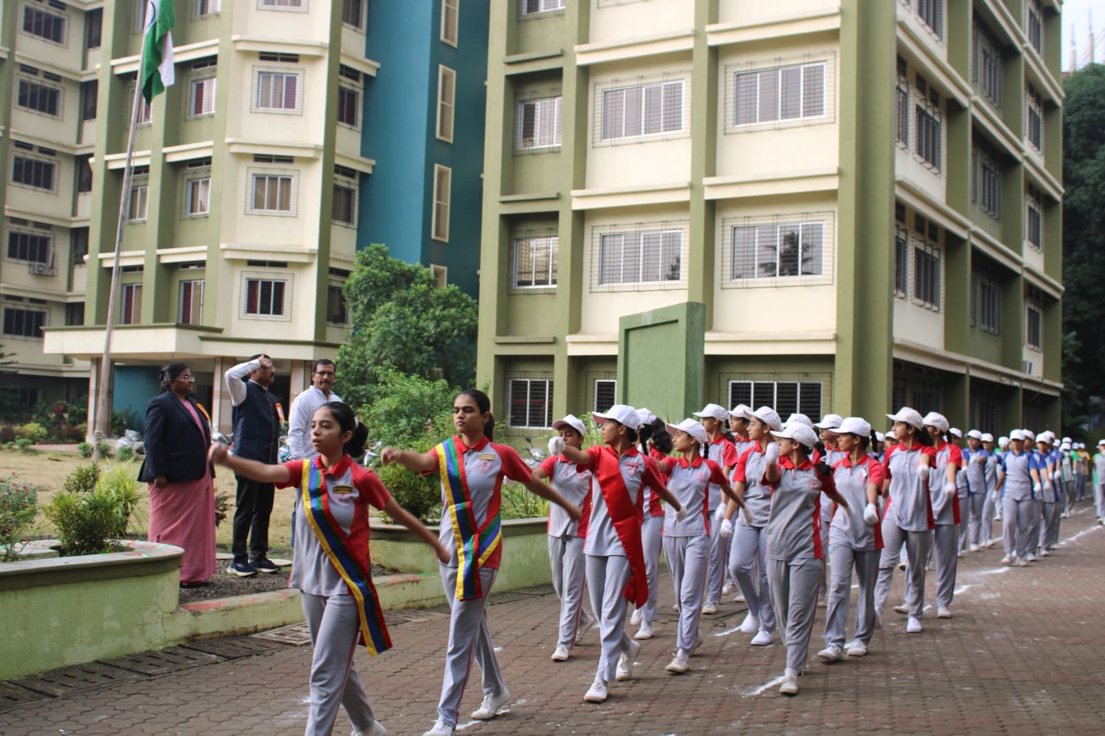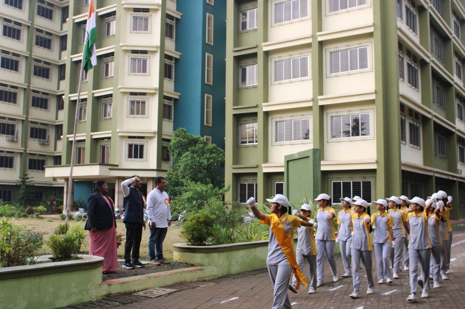 The celebration began with flag hoisting ceremony by the Chief Guest Mr. Kunal Patil, parent of the SSC topper of the academic year 2023-2024, Miss Akansha Patil along with the management, followed by the national Anthem to pay homage to the nation.