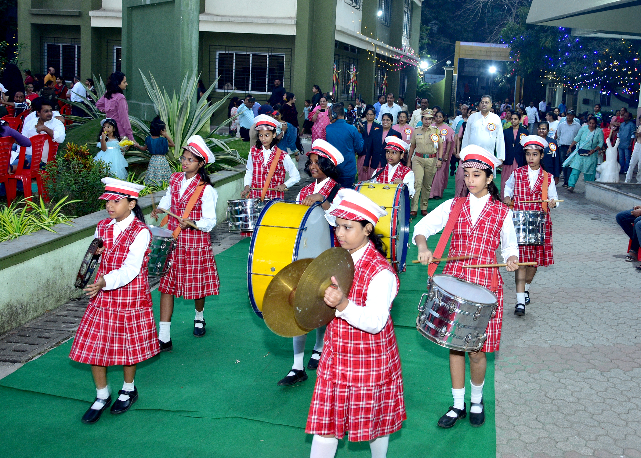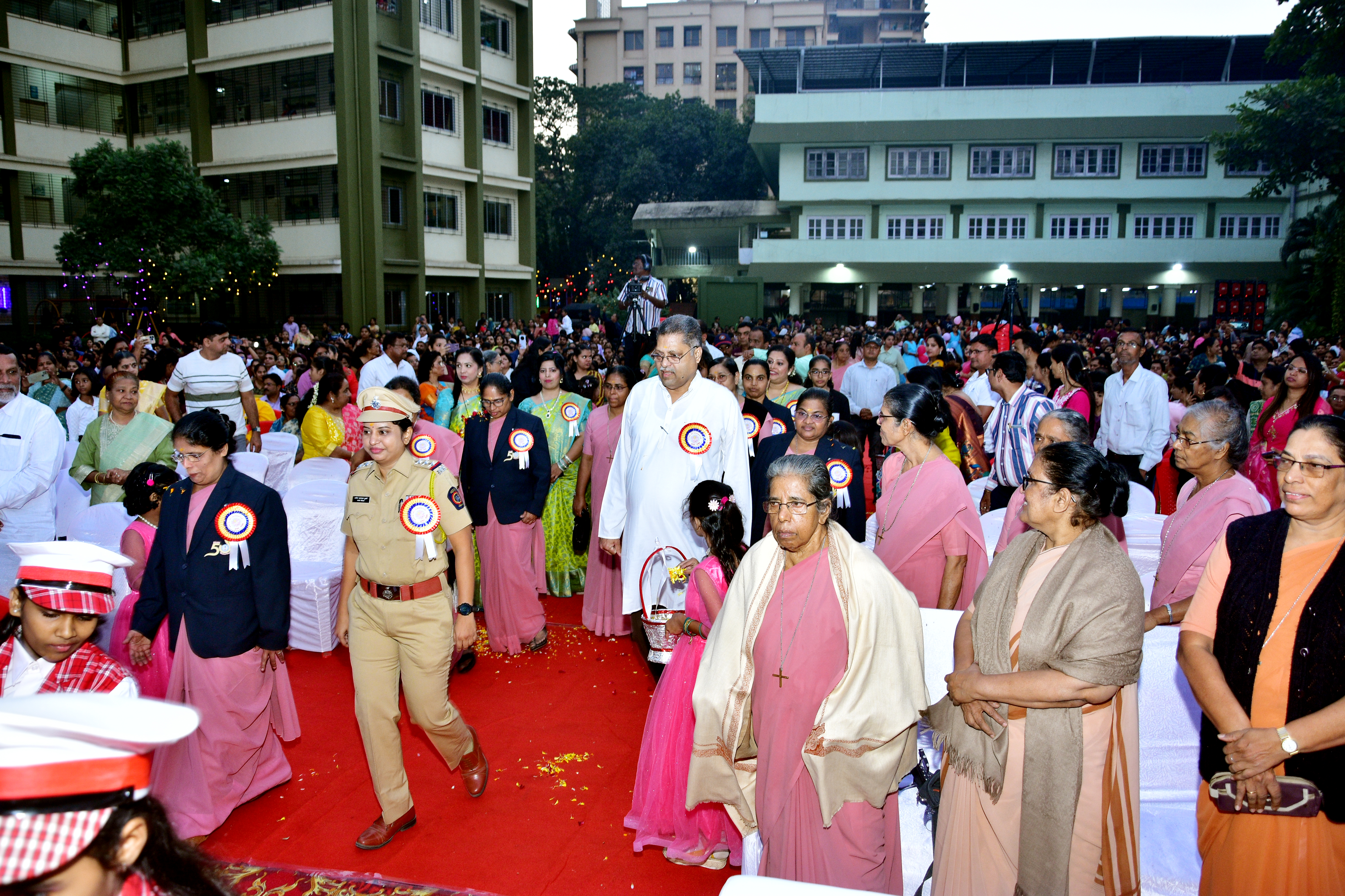 The show began with a warm welcome by Mrs. Laxmi Panjabi and Mrs. Maria Joseph who gave an inspiring inaugural address, also highlighted the importance of such events in the school calendar and how they help in promoting the school’s values and ethos. The program was scheduled at 5.30 p.m. Many eminent dignitaries were present at the Annual Day Celebration. The Chief guests included dignitaries like Rev. Father Simon D’Souza [Parish Priest and Manager of Our Lady of Lourdes Church, Kalyan] and Guest of Honour, Mrs. Archana Dusane – Sonar [Senior Police Inspector, Thane Railway Police Station, Mumbai]. The School invited all the parents to the function which began at 6.00 pm with traditional lamp lighting by the Special guests.