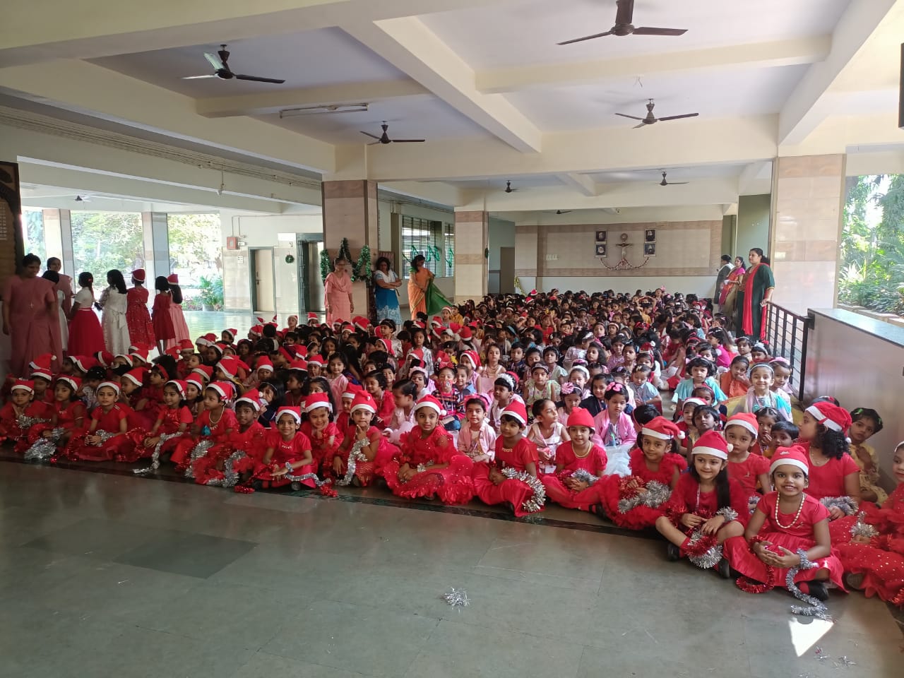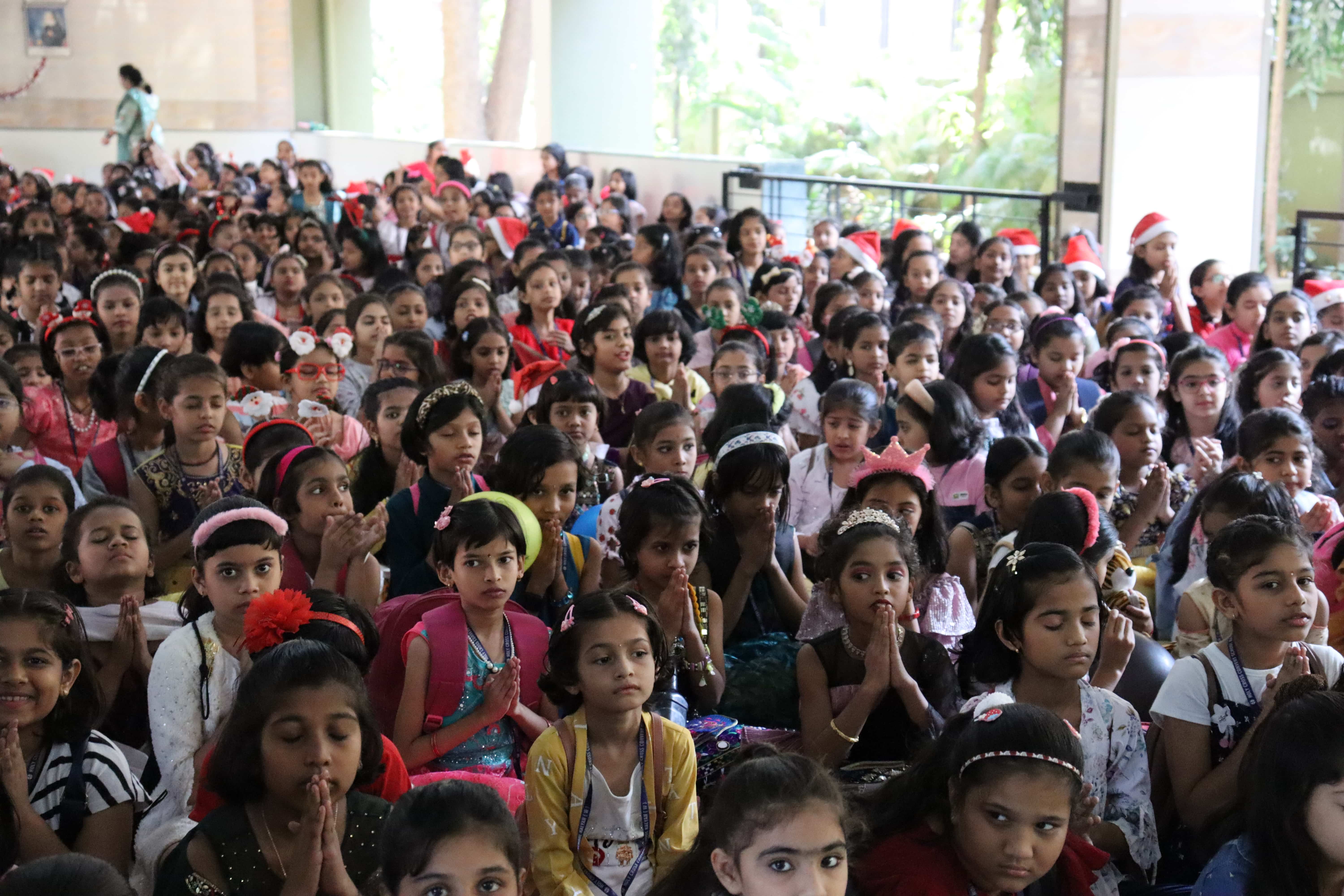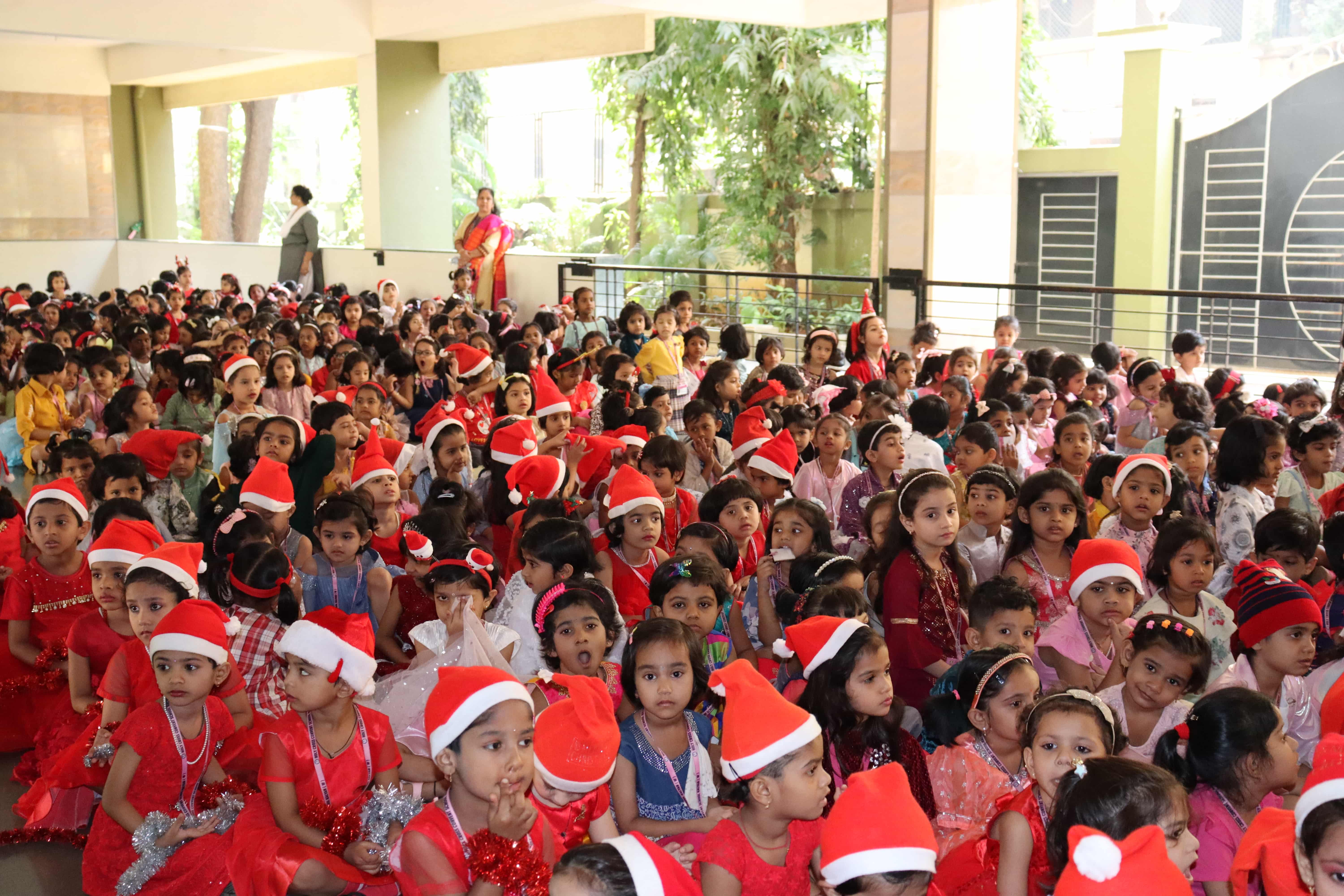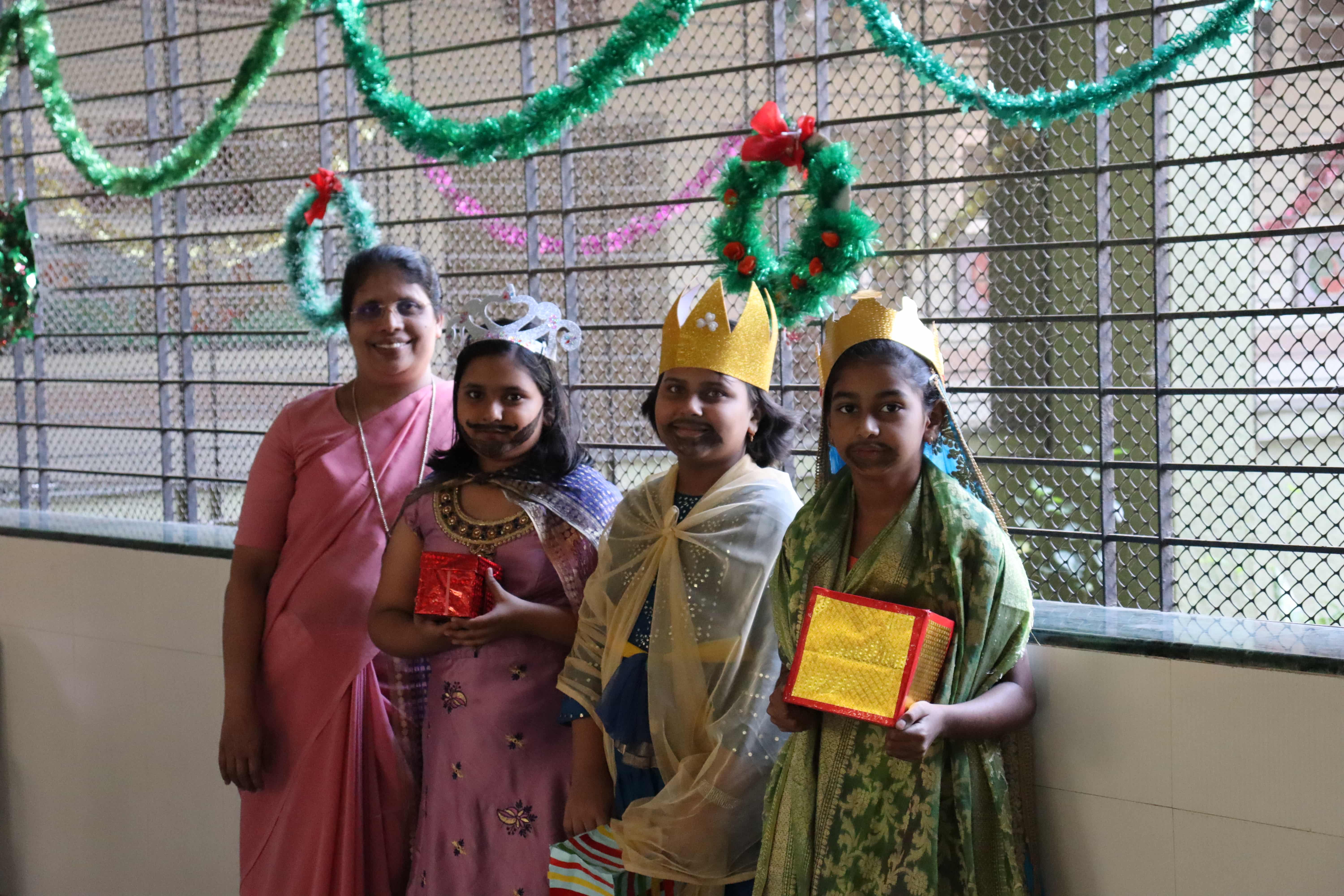 The delightful celebration included children coming in colourful dresses, bringing their favourite food in the tiffin’s, dancing and sharing the merriment together. The students were told about the birth of Lord Jesus through a tableau on Nativity. To encapsulate and express the joy, devotion and to explain what happened around Jesus Christ’s birth, Christmas Carols were sung by our students. The essence of Christmas came alive with the arrival of Santa Claus. Our beloved Headmistress Rev. Sr. Anees George gave us a beautiful message stating that Christmas indeed was a celebration of peace, love, togetherness and to be grateful, spread happiness and enjoy it to the fullest. The boundless joy of celebrating the festival was visible on the faces of the children especially when Santa Claus moved around dancing with them. May the sparkle and joy of Christmas infuse the life of each and every one with hope, positivity and joy.