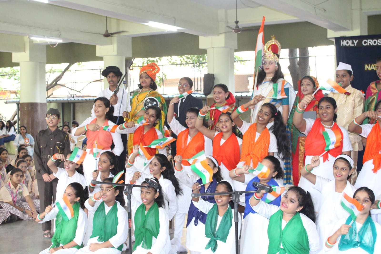 The school had been decorated with flags, tri-colour flowers and the pictures of freedom fighters, created a festive atmosphere to commemorate the day.